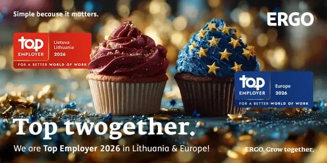 Šiandien, sausio 15 d., tarptautinė organizacija „Top Employer Institute“ ERGO Lietuvoje suteikė „Top Employer“ sertifikatą. Šis įvertinimas ERGO bendruomenei be galo svarbus – jis patvirtina, kad mūsų pastangos siekiant užtikrinti darbuotojams palankias darbo sąlygas ir išlaikyti į žmones orientuotą požiūrį yra matomas ir vertinamas. Be to, šį įvertinimą pelnė ir ERGO Latvijoje bei Estijoje, o ERGO grupė buvo įvertinta kaip „Top Employer Europe 2026“. Džiaugiamės, kad esame pripažintas ir vertinamas darbdavys tiek vietiniu, tiek Europos lygmeniu.